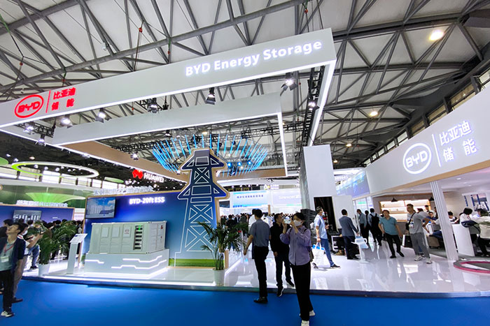 项目名称:2023上海国际光伏展 举办地点:上海新国际展览中心 合作企业:比亚迪储能 面积:500㎡展览设计搭建