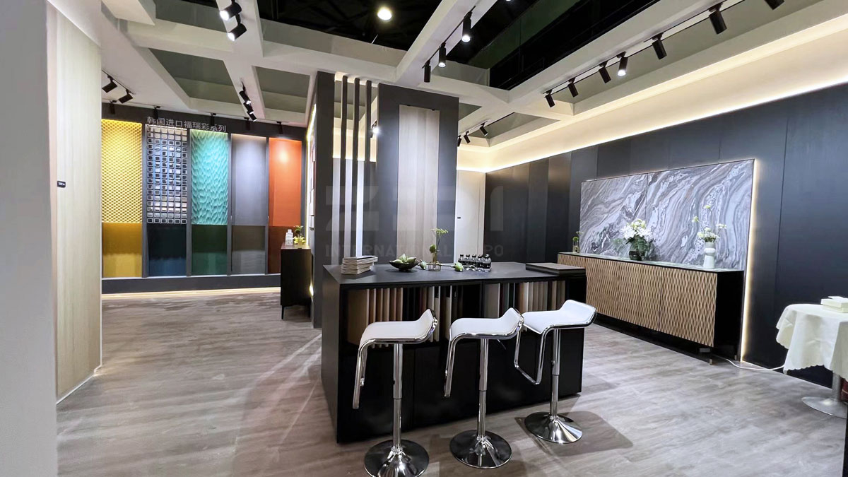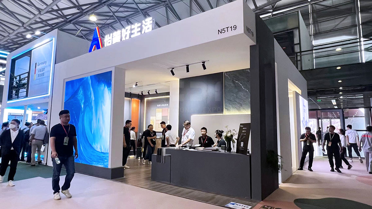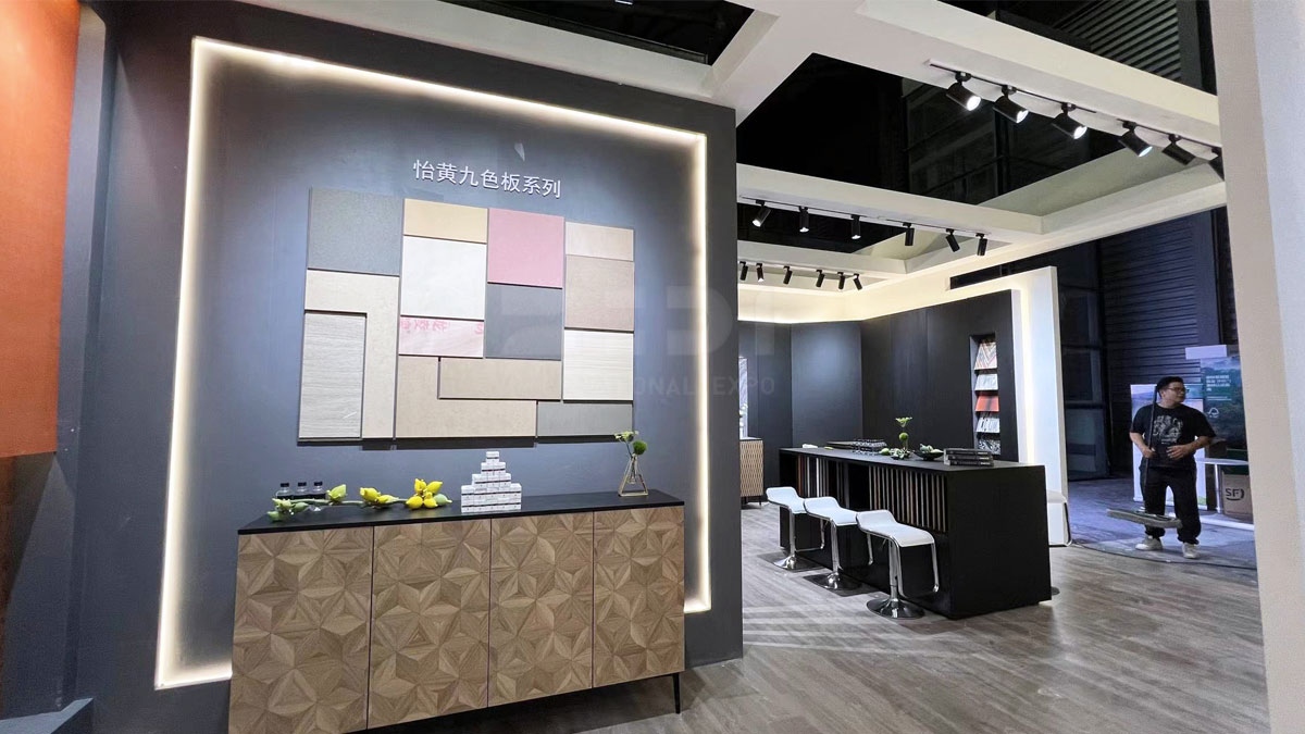 本次 怡黄展台占地面积为72㎡,展位位于新国际中心(N5-T19),以特色的展台风格及产品获得国内外众多观众的喜爱,展位现场人潮涌动,欢声持续不断。正如上海家具展的基因是一直在创变,怡黄好生活本次展会携高科技花色、深肌理设计和饰面基材新品,更新、升级、扩容你的设计板材库。