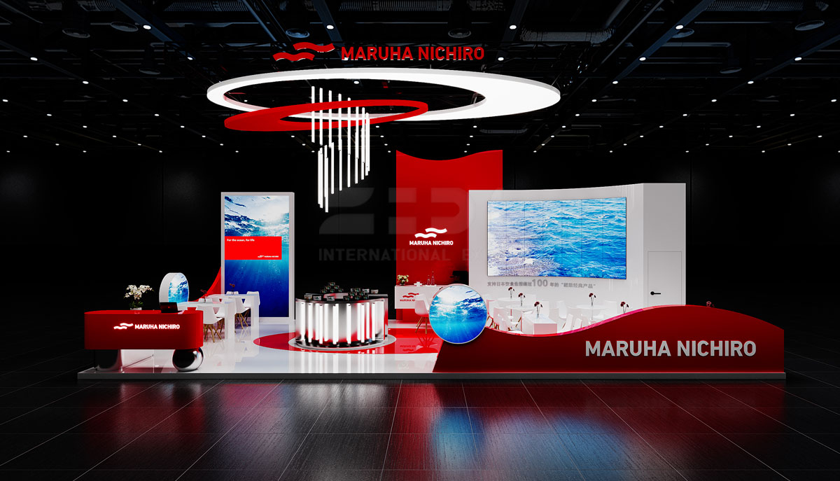2023年中国(青岛)渔业展览会(SeaFareChina)已于2023年10月25日~10月27日在红岛国际会议展览中心举行,泽迪展览首次携手“maruha nichiro"亮相该展会,本次maruha nichiro展台占地面积为70㎡,简约统一风,整体材质:木结构+乳胶漆+烤漆柜子,材料包括金属发光字 软膜绷布 发光灯光 灯箱 十公分地台 三聚氢案板金属包边 雪弗板字 写真等。本次项目泽迪展览团队“设计-搭建-撤展”全程跟进,秉持着始于创新,精于品质的态度去完成每一个作品,为maruha nichiro品牌企业提供一个专业性展示平台,传递品牌内涵树立企业标识形象。